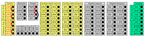 In the picture below you can see an overview of the I/O terminal blocks of an e-Series controller: