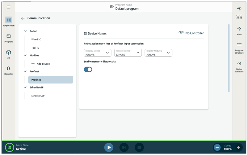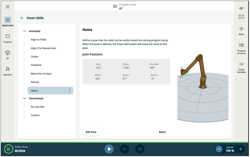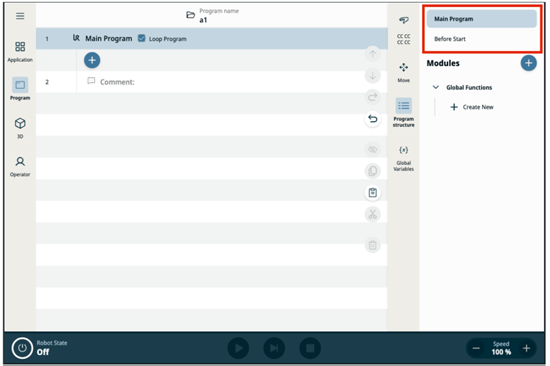 When opening a program created with a previous version of PolyScope X, configuration and status data will be migrated to the new screen. Note that any suppressed nodes will not be migrated.
