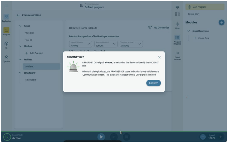 - Added support for DCP signal/Flash LED. Message will be shown on the connected Teach Pendant when "Flash LED" is requested on Robot PROFINET Device.