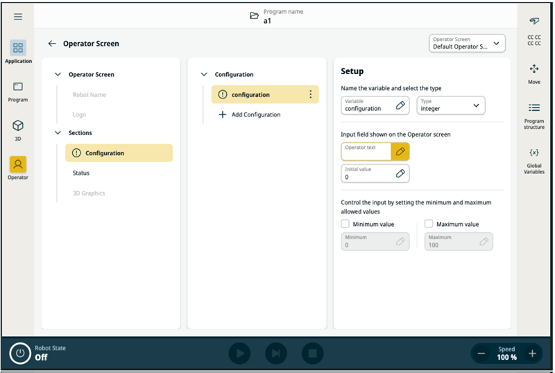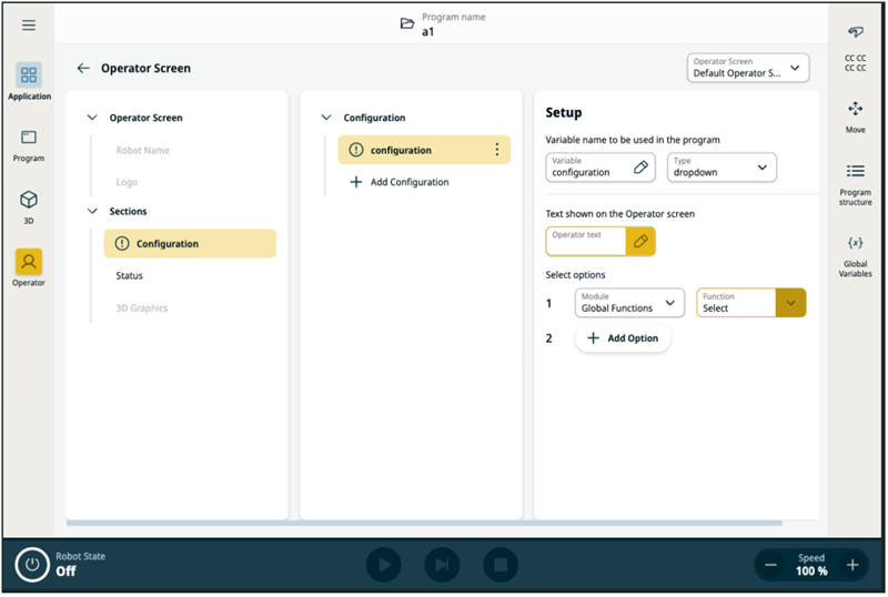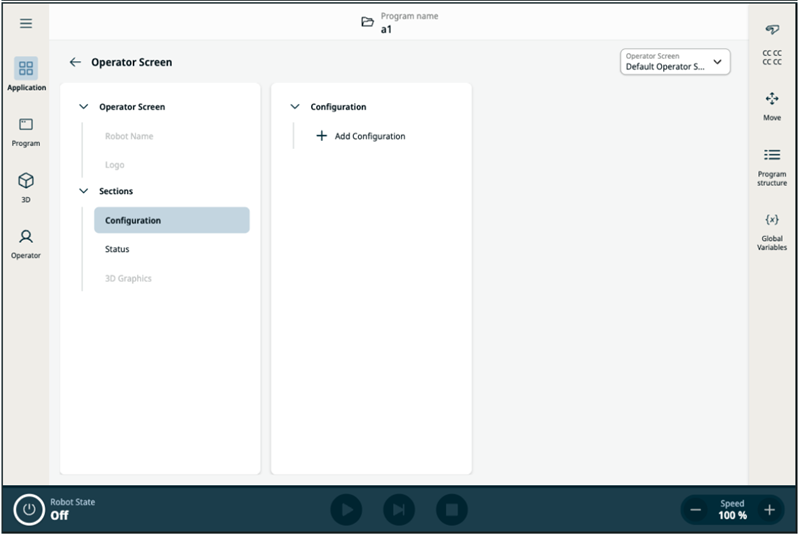 with a robot in Manual Mode. - Operator Screen Configuration is now managed directly from its application screen.