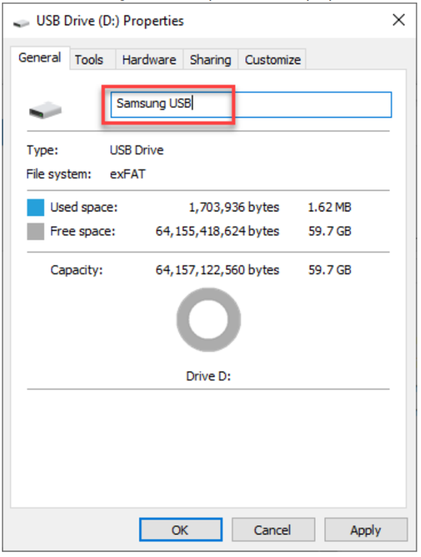 To check or change the label open USB drive properties in Windows. - Issue: Support File Export Saves to Incorrect USB Drive