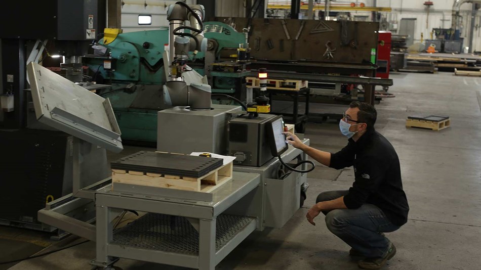 Siouxland Fabricating Inc.提供定制加工服务,包括切割、弯曲、组装和焊接,其工厂位于爱荷华州的洛克谷小镇。面对寻找熟练工人(尤其是焊接领域的熟练工人)的长期挑战,Siouxland Fabricating决定实现焊接和冲压任务的自动化。以前使用昂贵且复杂的传统机器人的经验迫使该公司探索由协作机器人完成这些任务的可能性,因为协作机器人价格低廉,易于使用,并且能够应对高混合/小批量的生产。